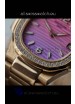 Gradient Pink and Purple Textured Dial with Date Window at 6 O'Clock.