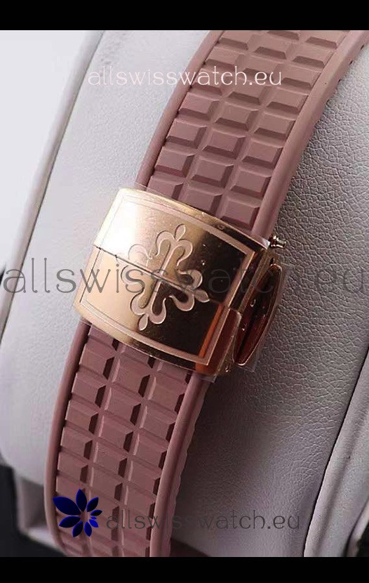 Pink Rubber Strap with Rose Gold Plated Steel Folding Clasp complete with Patek Philippe Markings.
