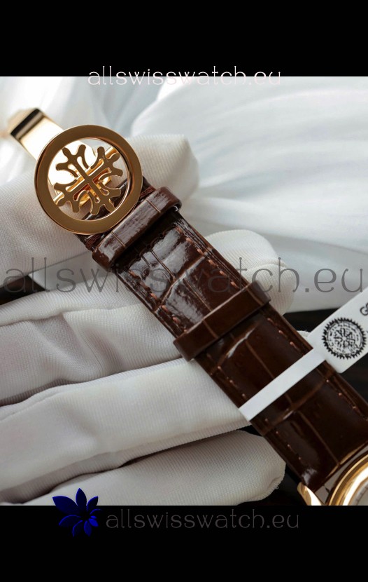 Genuine Leather Strap with Steel Folding Clasp complete with Patek Philippe Markings.