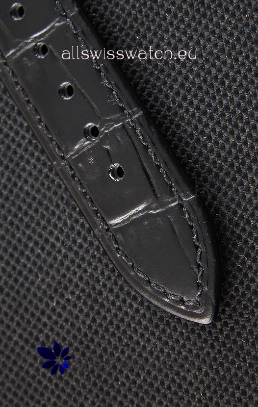 Genuine Leather Strap with Diamonds Encrusted Steel Tang Buckle complete with Patek Philippe Markings.