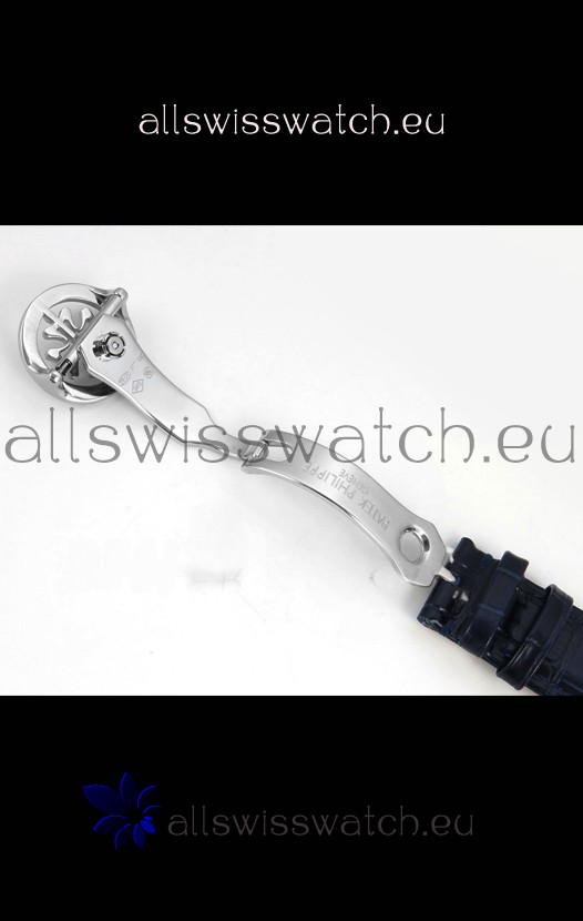 Genuine Leather Strap with Steel Folding Clasp complete with Patek Philippe Markings.