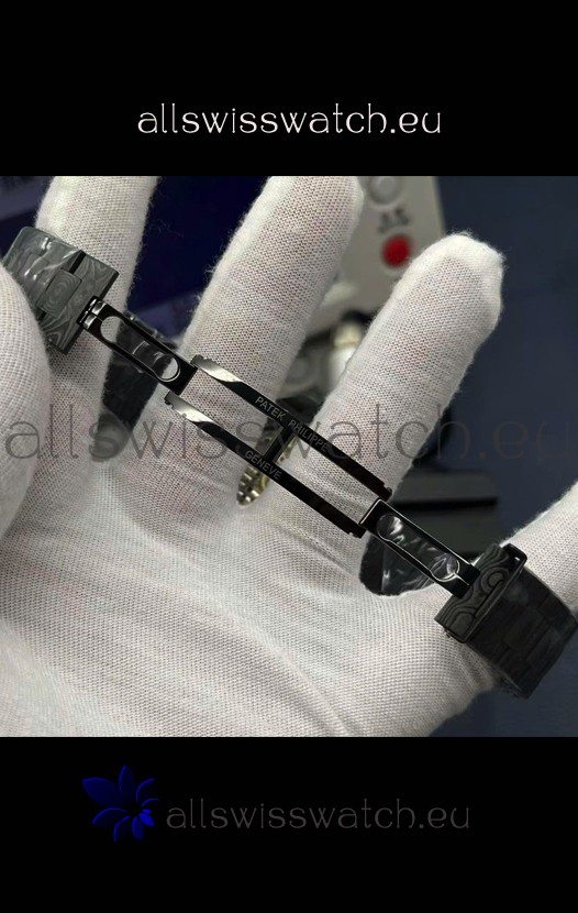 Carbon Fiber Strap linked with Pins as per the originals with Signature Patek Philippe Clasps as per the originals.