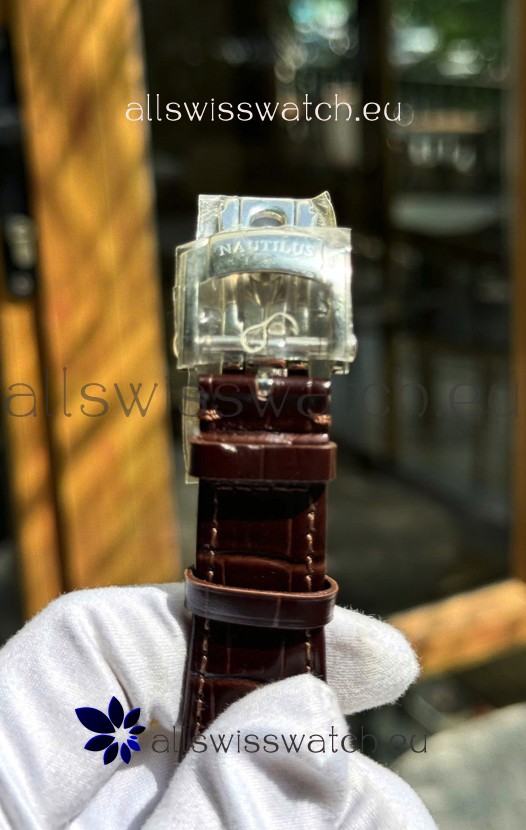Genuine Leather Strap with Double Fold Stainlless Steel Clasps with Patek Philippe Markings/Engravings