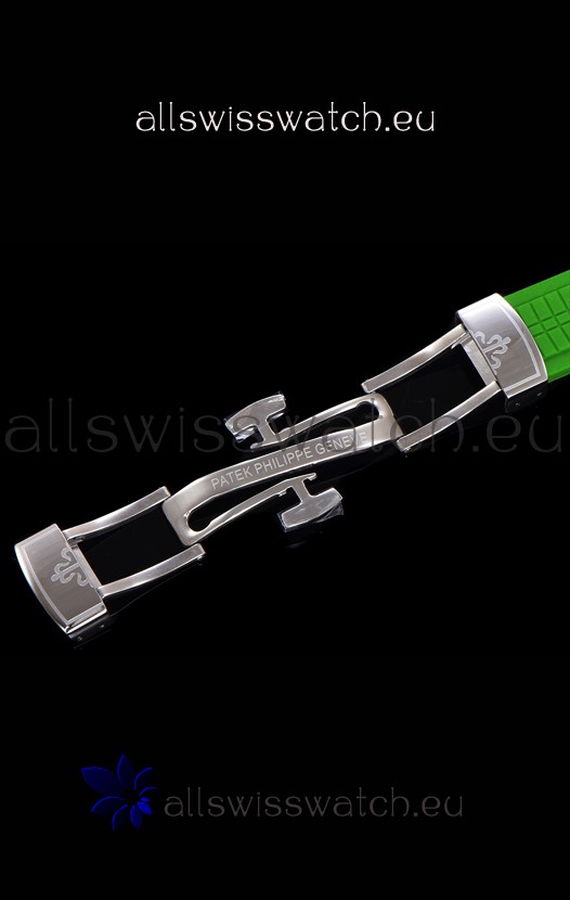 New Style Curved Rubber Strap with Steel Folding Clasp complete with Patek Philippe Markings.