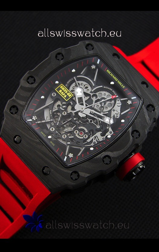Top Grade Richard Mille RM35-2 Rafael Nadal Forged Carbon Case with Red Rubber Strapwith Free Shipping and 1 year warranty