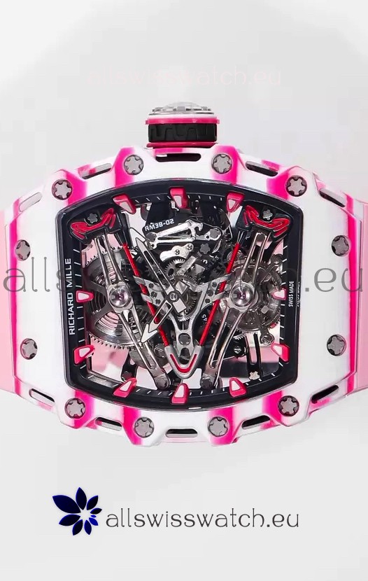 Richard Mille RM38-02 White/Pink Carbon Bubba Watson Pink Rubber Tourbillon Movement 1:1 Mirror Replica
