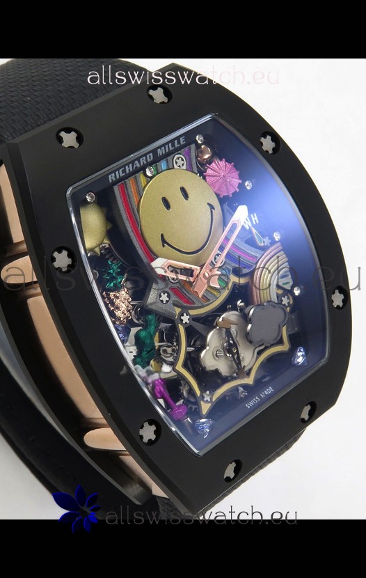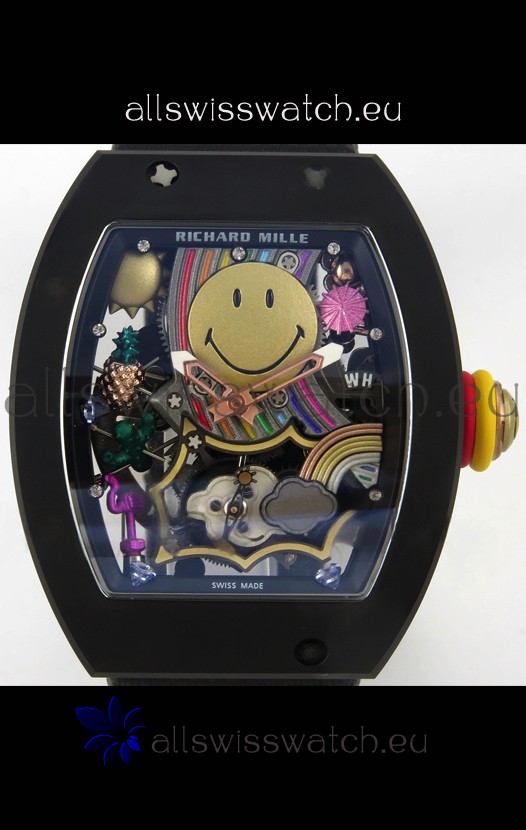 You're reviewing: Richard Mille Super Clone RM088 Smiley Tourbillon Black Ceramic Velcro Strap Watch