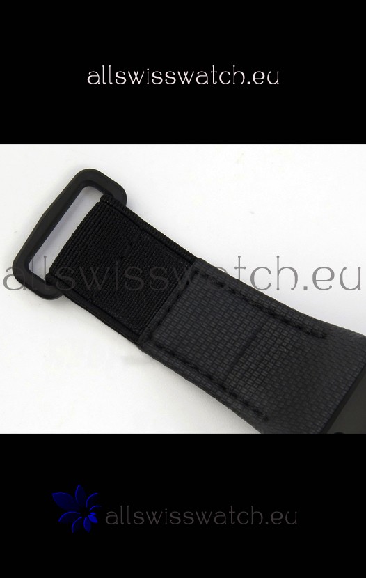 Black Nylon Strap with Tuck Buckle in PVD Coating - Velcro Fitting