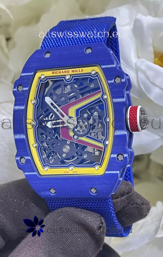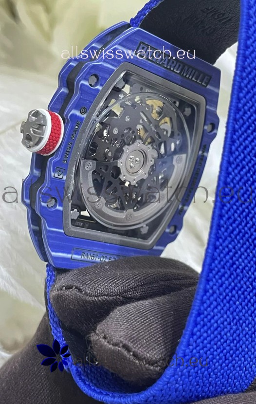 Richard Mille Super Clone RM67-02 Fernando Alonso Blue Carbon TPT 37 Grams Watch Blue Strap