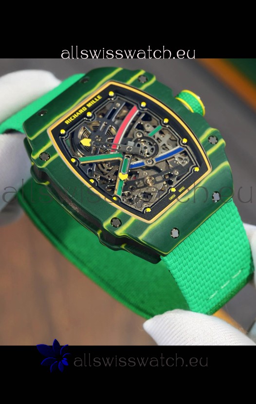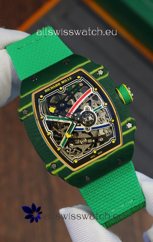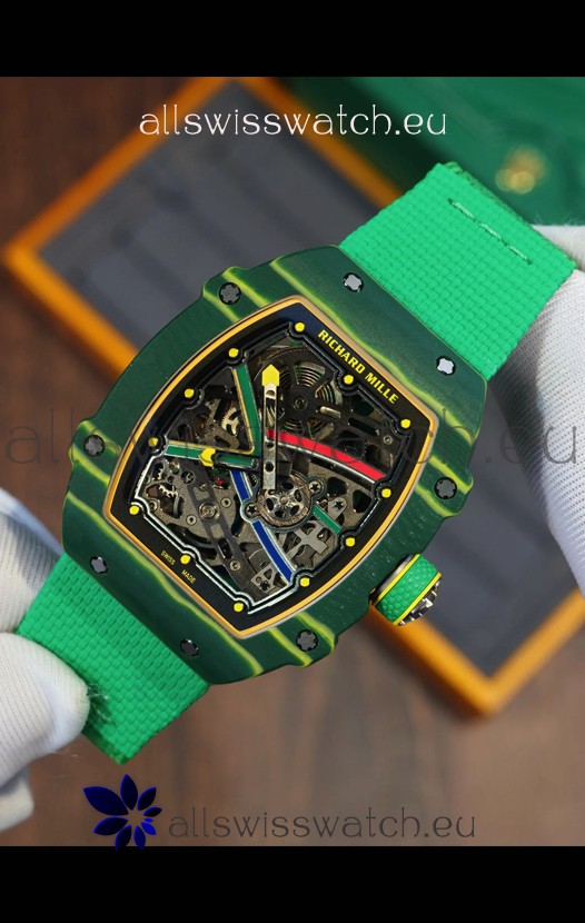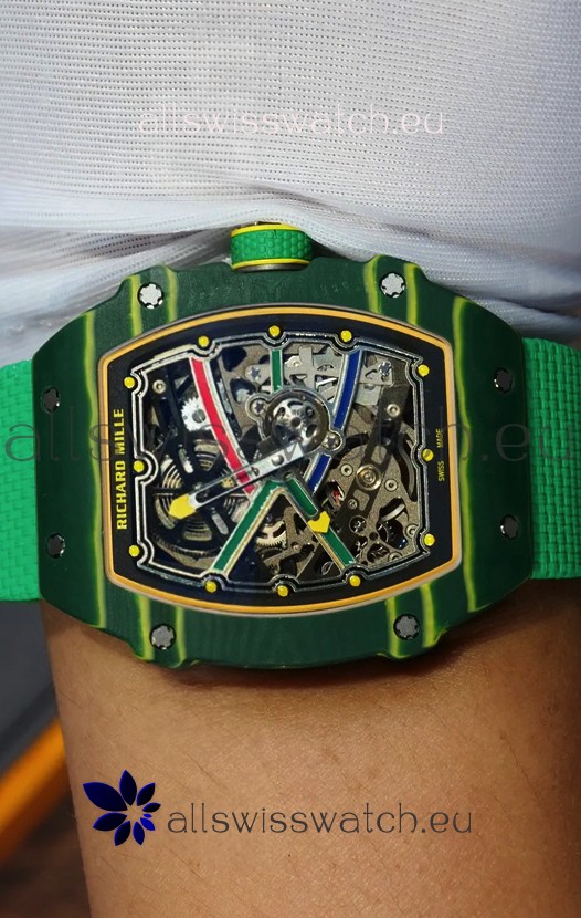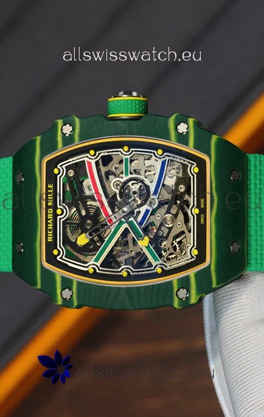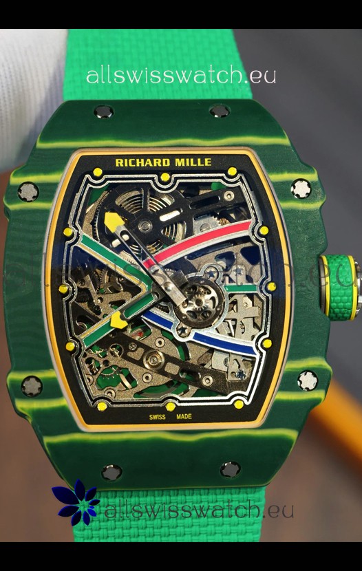 Richard Mille Super Clone RM67-02 Wayde Van Niekerk Green Carbon TPT 37 Grams Watch Green Strap