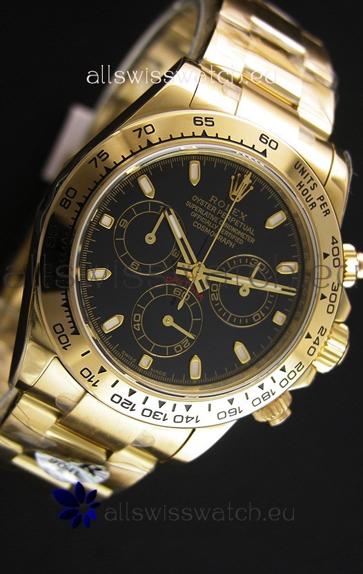 The Best Rolex Daytona Model Replicated up to Date. The First Rolex model to adopt a 904L Steel on Casing and Strap which is the same steel used by Rolex. Compared with an Original Side by Side and there were NO Differences Whatsoever. Complete list of details have been stated below and you will see that tremendous amount of detaiing and work has been put into this edition.