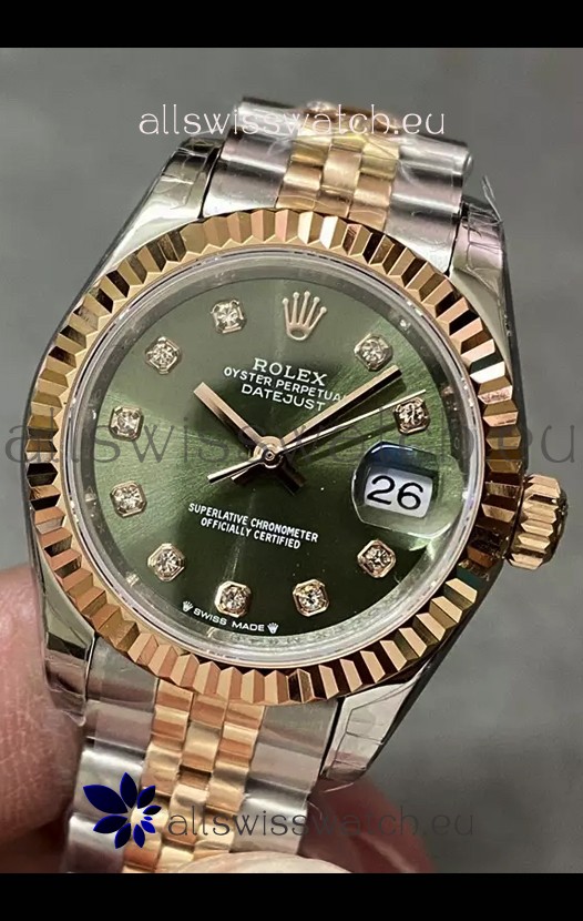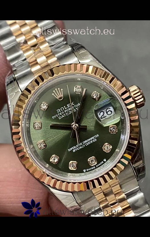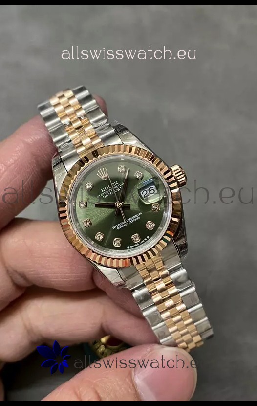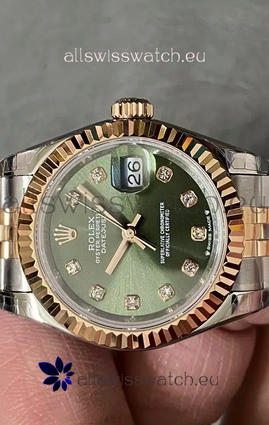 Rolex Datejust Super Clone Green Dial Rose Gold Steel Watch 28MM