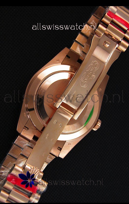 18K Rose Gold Plating on 316L Stainless Steel New Design President Strap with Folding Clasps complete with Rolex Markings and Engravings