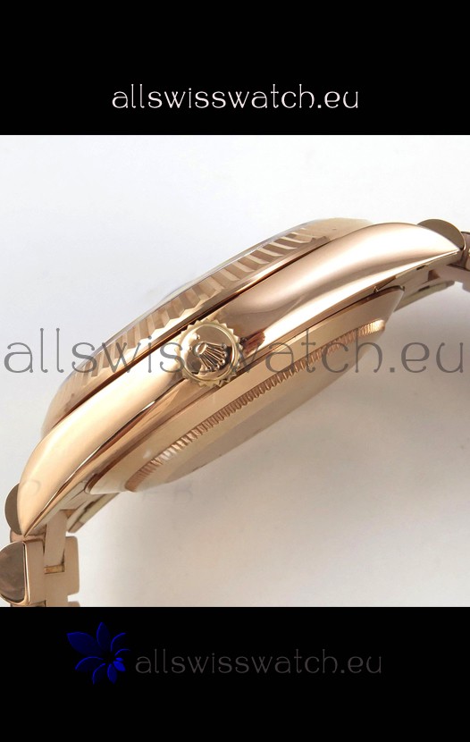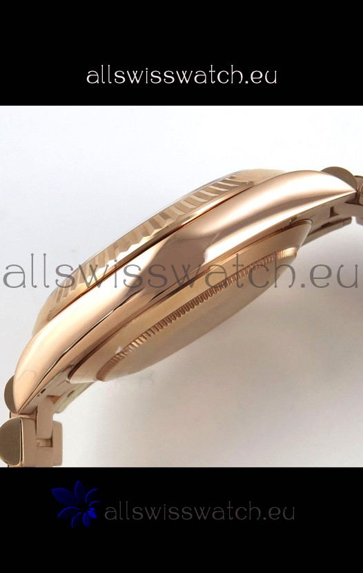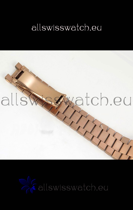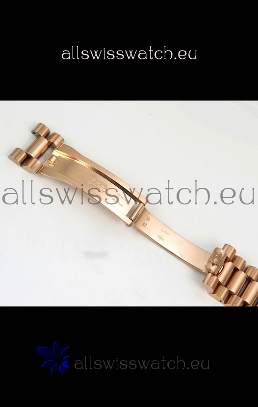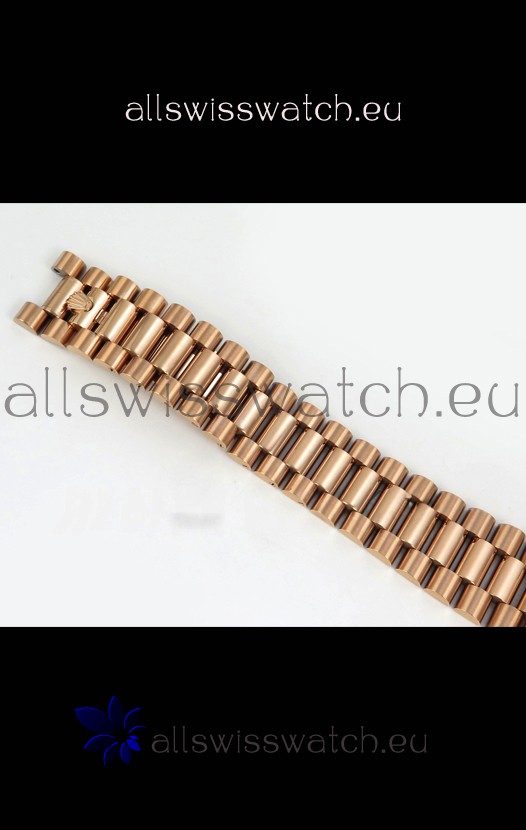18K Rose Gold Plating on 904L Stainless Steel New Design President Strap with Folding Clasps complete with Rolex Markings and Engravings