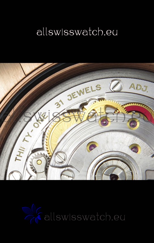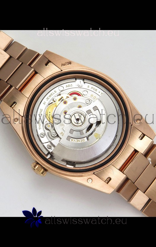 18K Rose Gold Plating on 904L Steel Case complete with all Rolex Markings and Engravings as per the Originals
