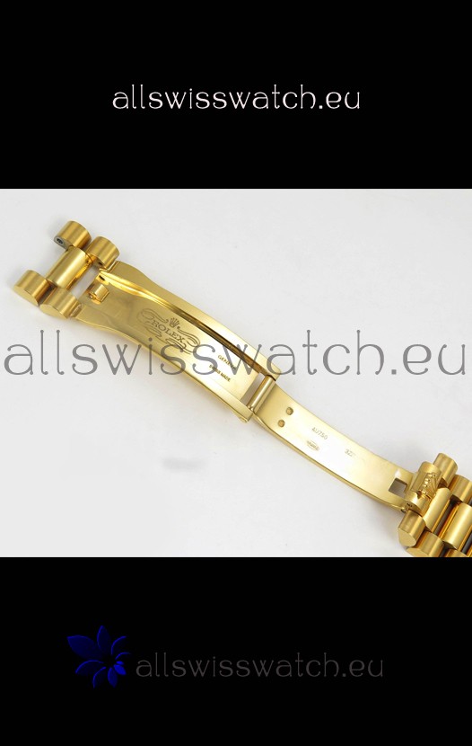 18K Yellow Gold Plating on 904L Stainless Steel New Design President Strap with Folding Clasps complete with Rolex Markings and Engravings