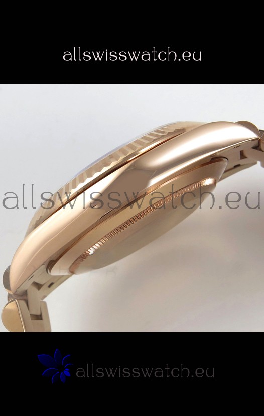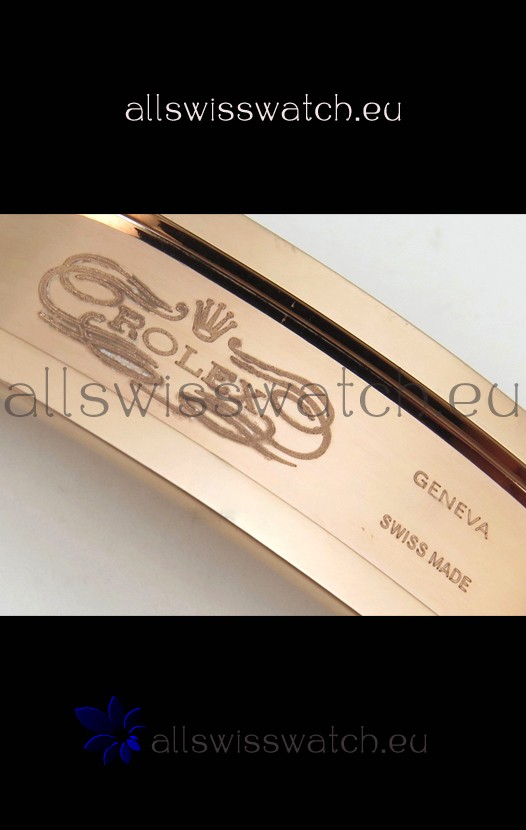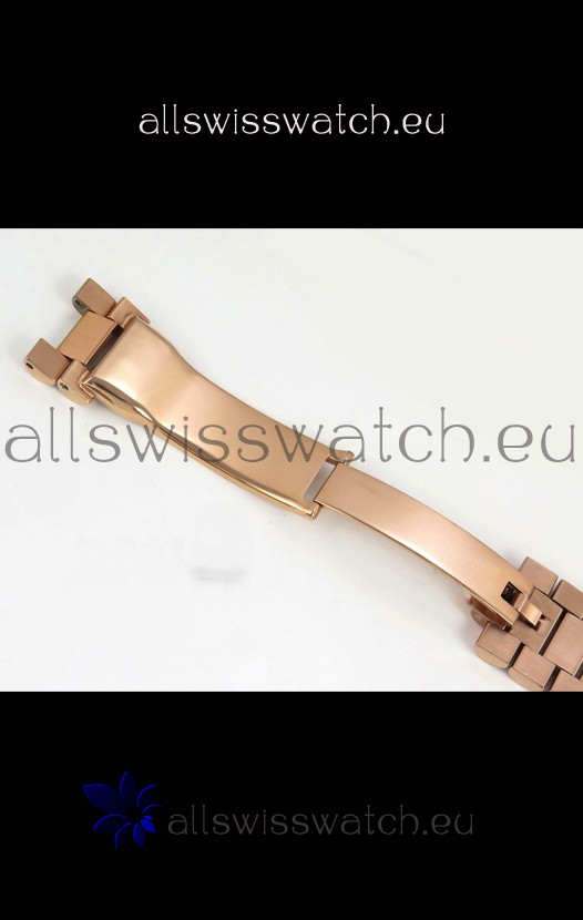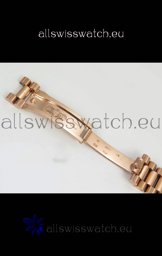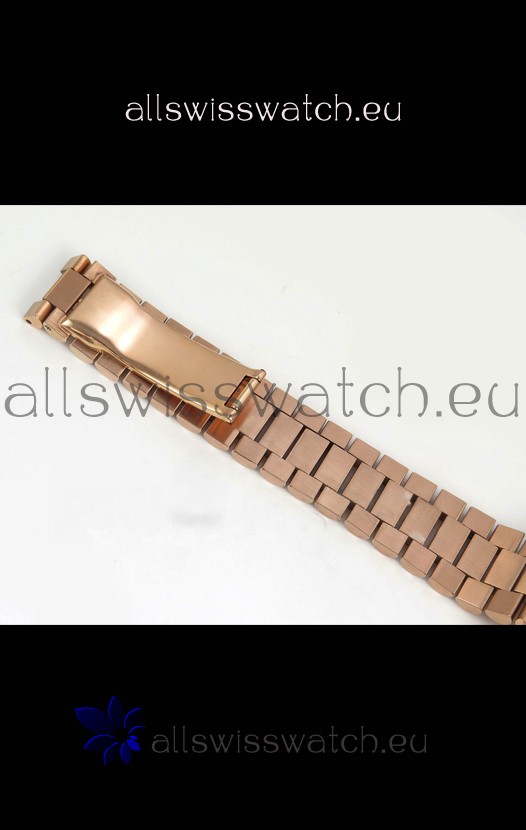 18K Rose Gold Plating on 904L Stainless Steel New Design President Strap with Folding Clasps complete with Rolex Markings and Engravings