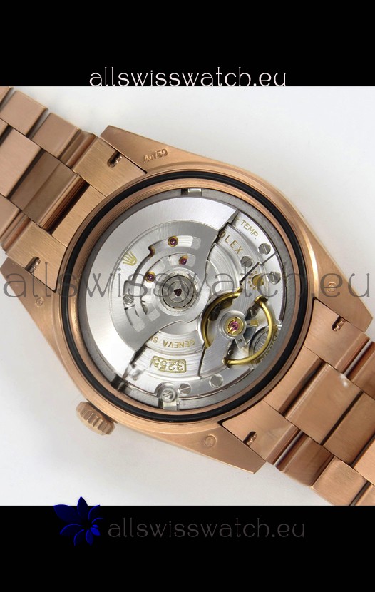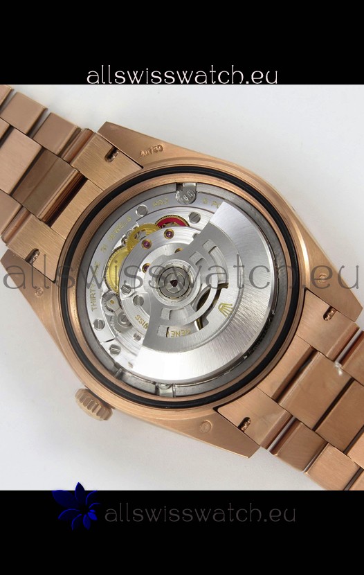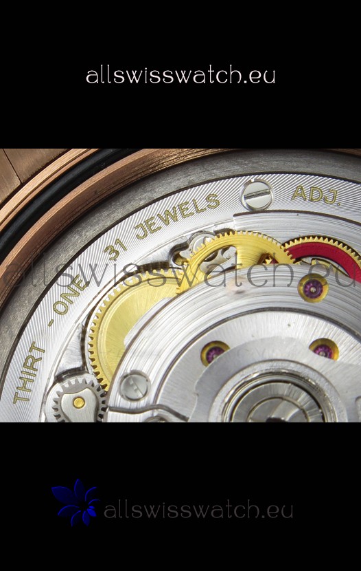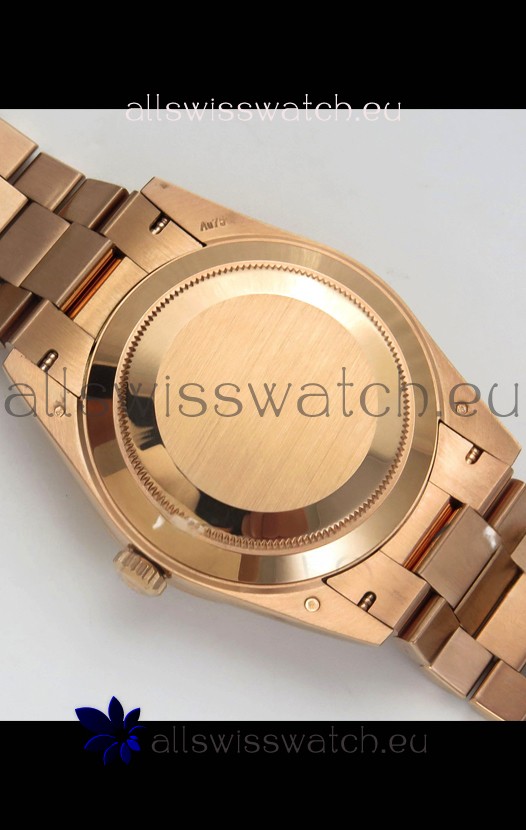 18K Rose Gold Plating on 904L Steel Case complete with all Rolex Markings and Engravings as per the Originals