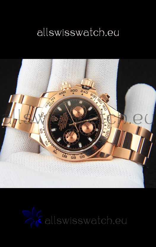 Rolex Daytona Japanese Movement Gold Casing Replica Watch in Black Dial