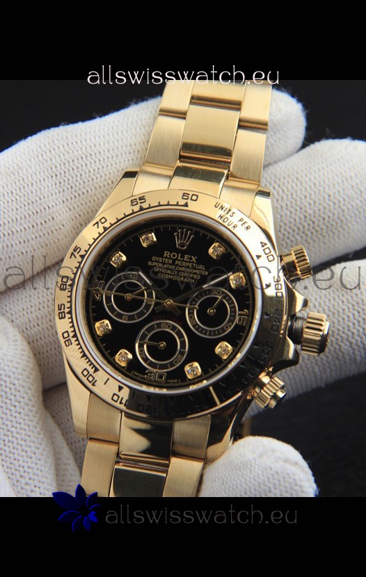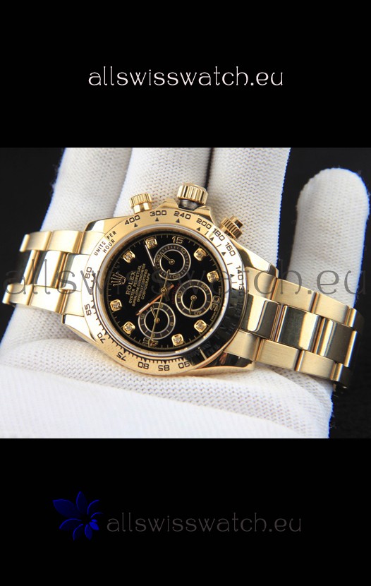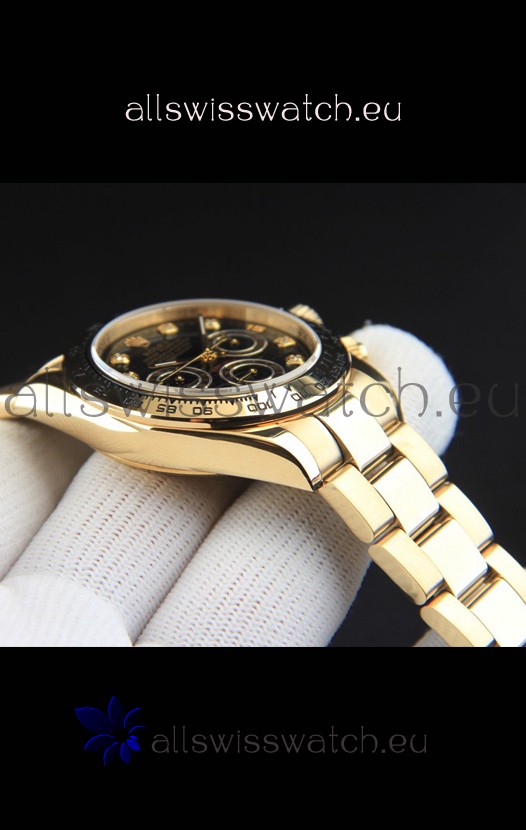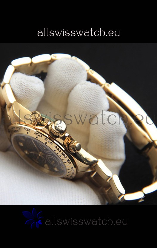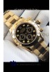 Rolex Daytona Japanese Movement Gold Casing Replica Watch in Black Dial