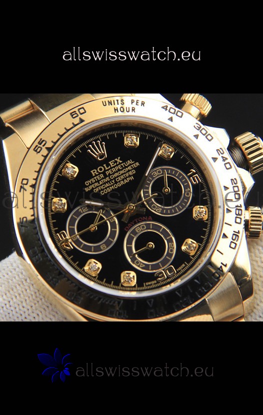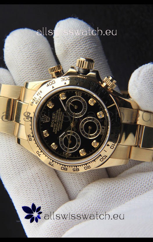 You're reviewing: Rolex Daytona Japanese Movement Gold Casing Replica Watch in Black Dial