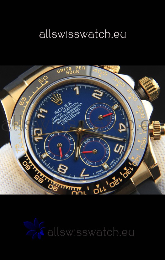 You're reviewing: Rolex Daytona Japanese Movement Gold Casing Replica Watch in Blue Dial