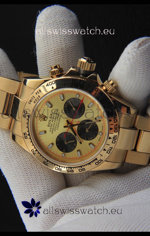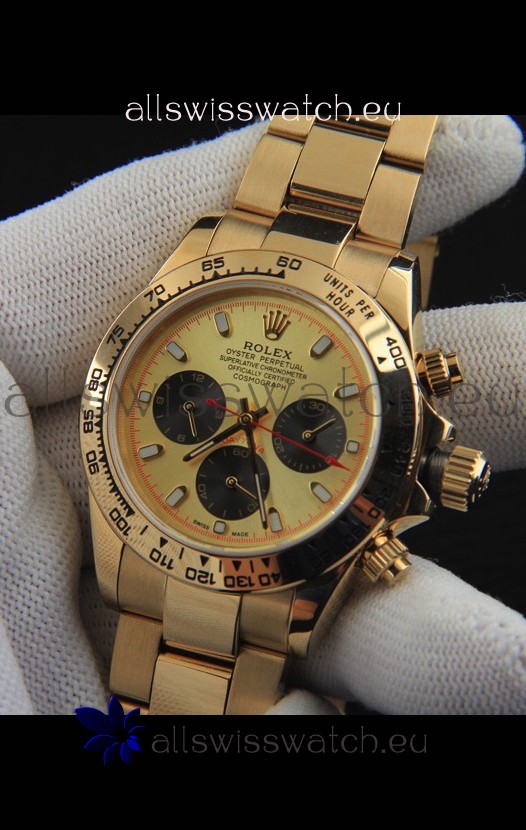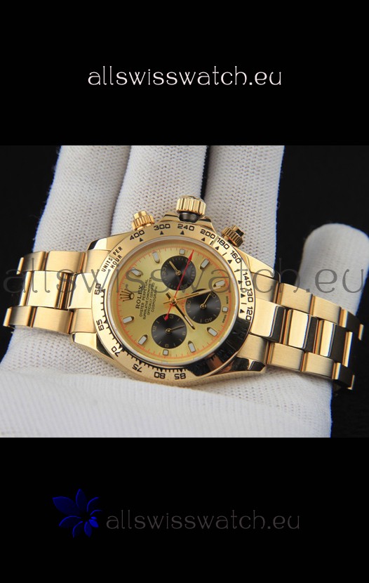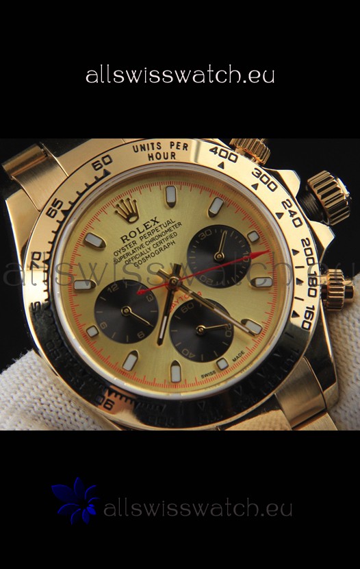 You're reviewing: Rolex Daytona Japanese Movement Gold Casing Replica Watch in Gold Dial