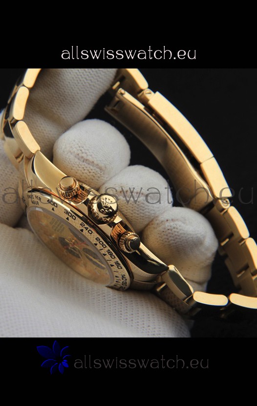 Rolex Daytona Japanese Movement Gold Casing Replica Watch in Gold Dial