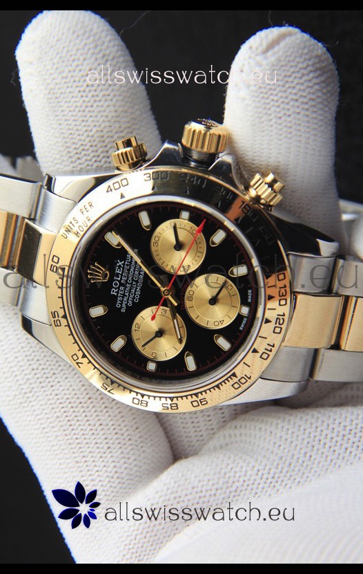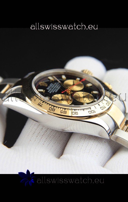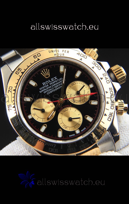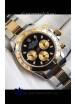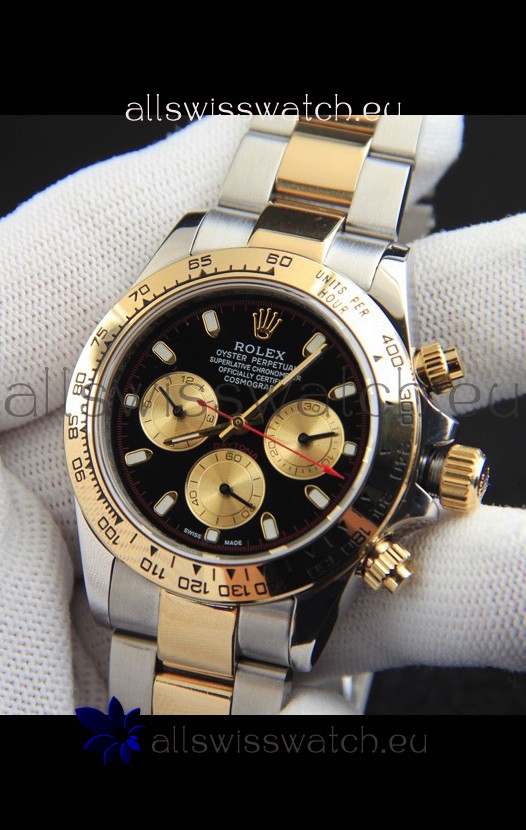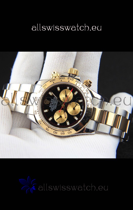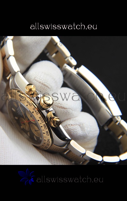 Rolex Daytona Japanese Movement Two Tone Gold Casing Watch in Black Dial
