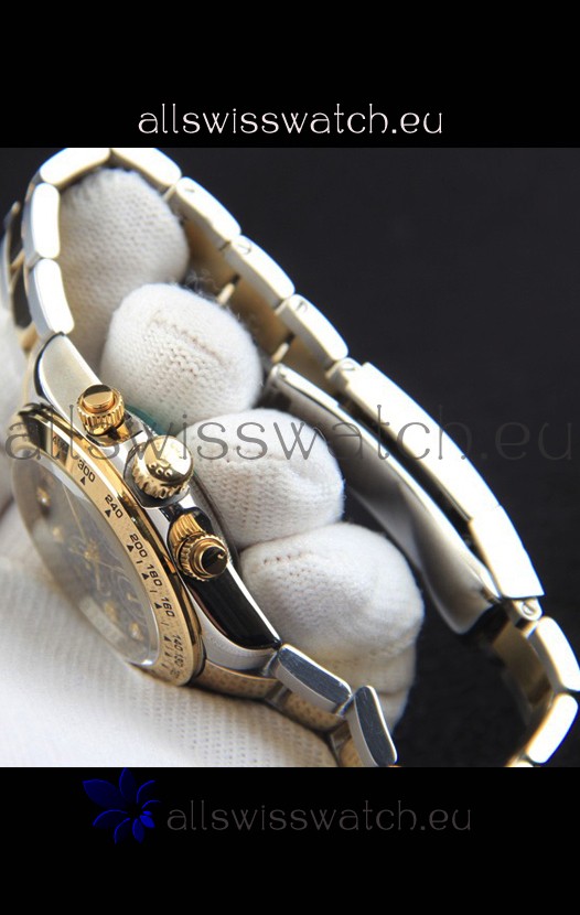 Rolex Daytona Japanese Movement Two Tone Gold Casing Watch in Black Dial