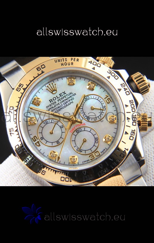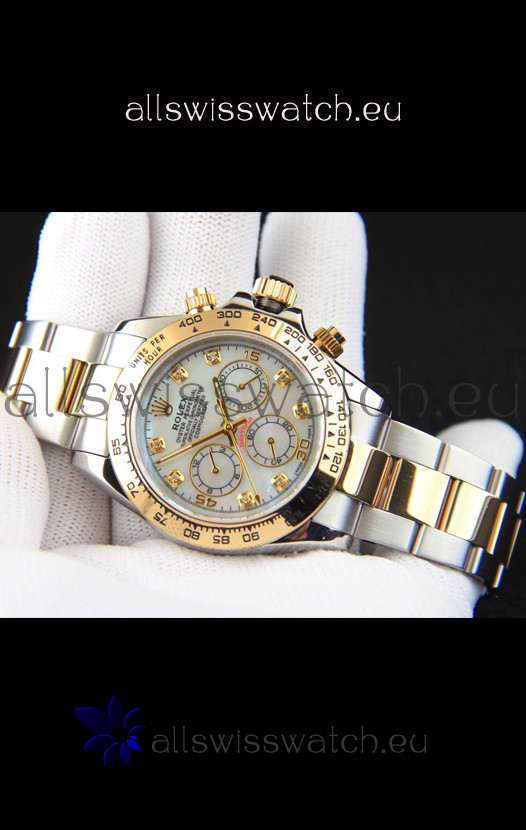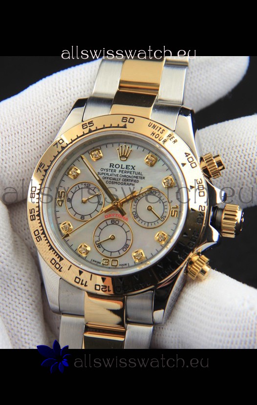 Rolex Daytona Japanese Movement Two Tone Gold Casing Watch in Pearl Dial