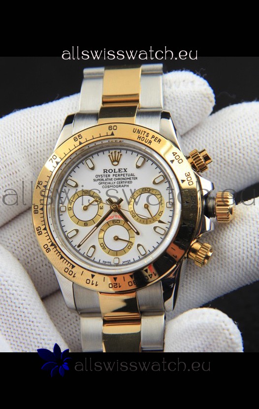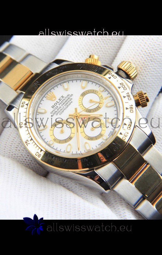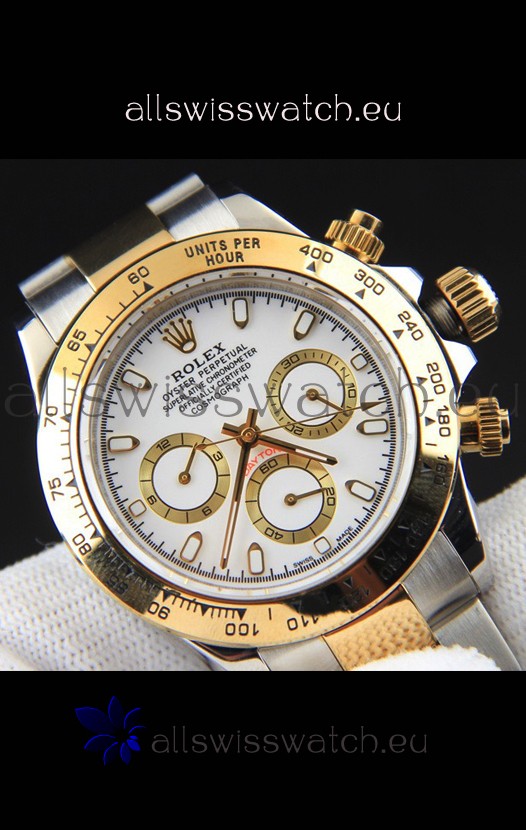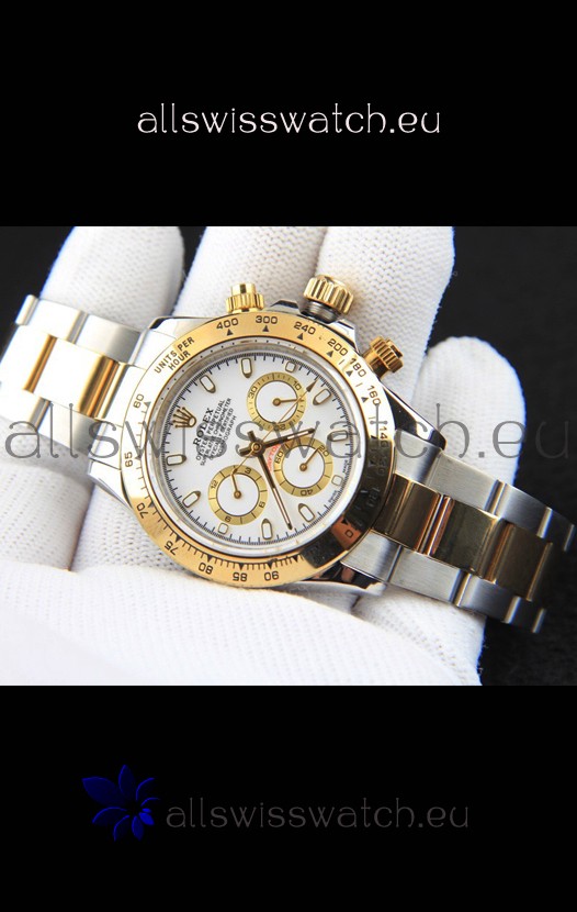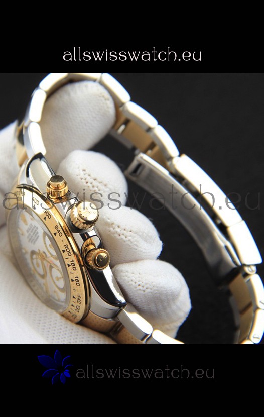 Rolex Daytona Japanese Movement Two Tone Gold Casing Watch in White Dial
