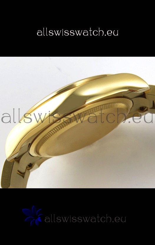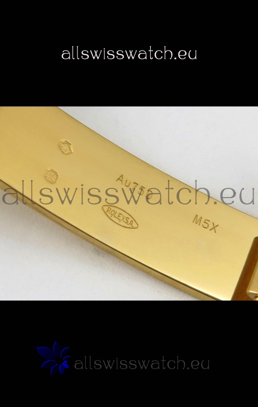 Yellow Gold Plating on 904 Solid Stainless Case with Rolex Markings and Engravings like the Authentic.