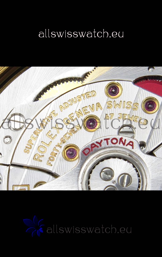 Genuine Cal.4131 Movement built from Scratch with no modifications, Platinum Plating on Rotors and Plates as per the original. The Same movement you find in Rolex Daytona Watches