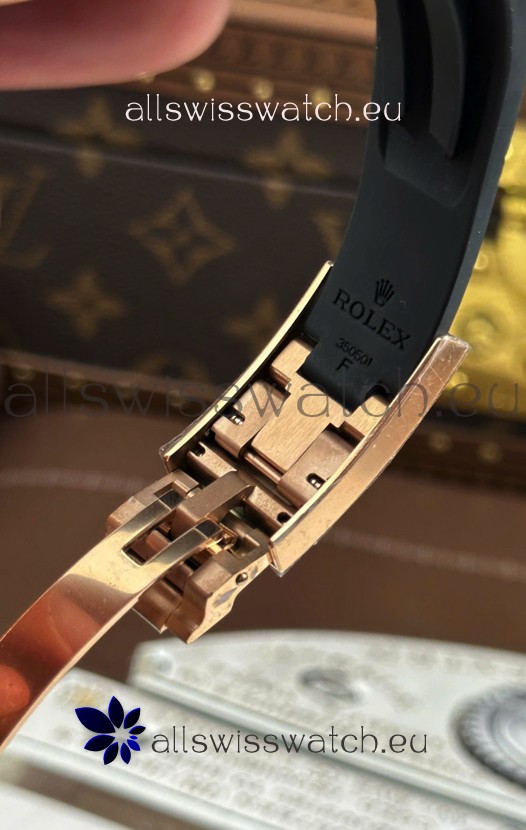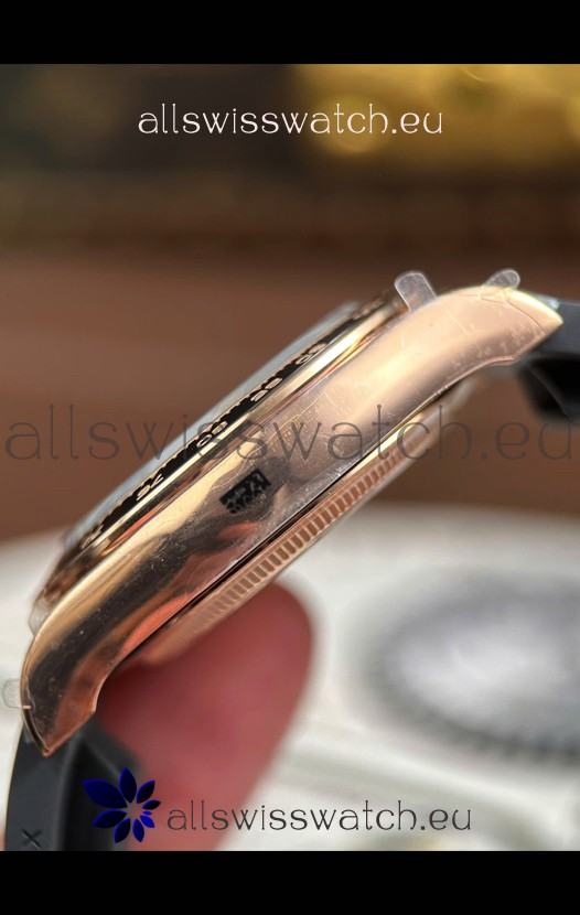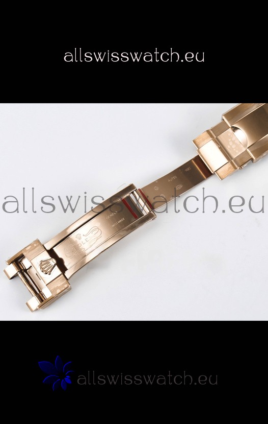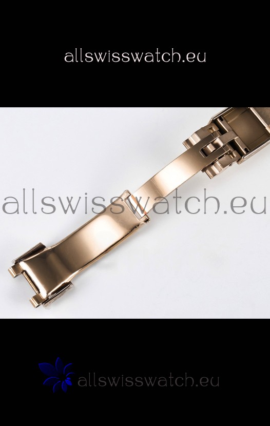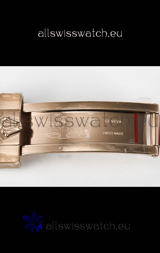 Rose Gold Plating on 904 Solid Stainless Case with Rolex Markings and Engravings like the Authentic.