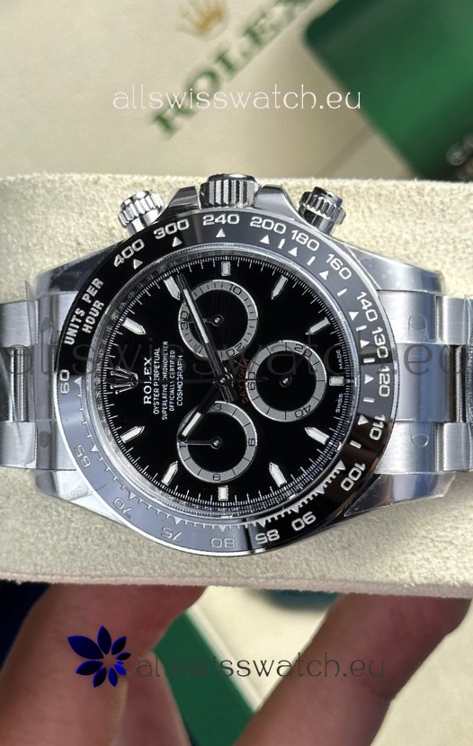 The Best Rolex Daytona Model Replicated up to Date. The First Rolex model to adopt a 904L Steel on Casing and Strap which is the same steel used by Rolex. Compared with an Original Side by Side and there were NO Differences Whatsoever. Complete list of details have been stated below and you will see that tremendous amount of detaiing and work has been put into this edition.
