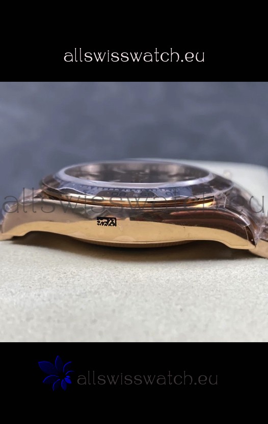 18K Rose Gold Plating on 904 Solid Stainless Case with Rolex Markings and Engravings like the Authentic.