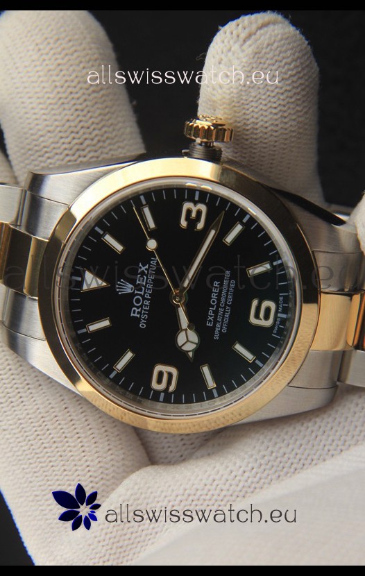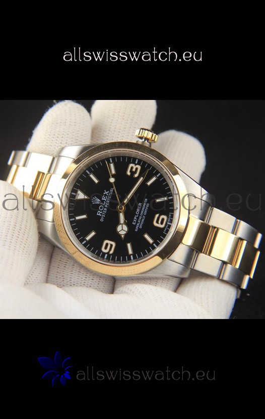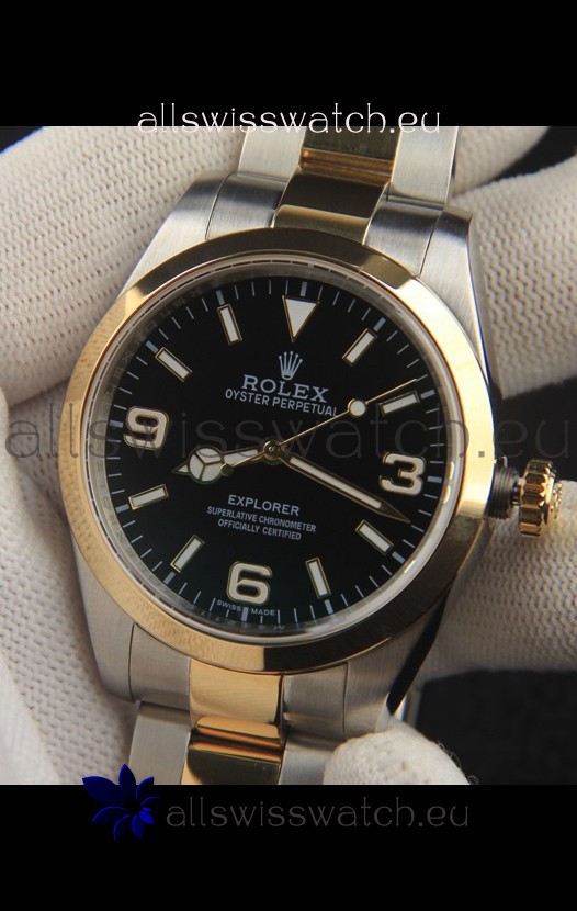 Rolex Explorer I Japanese Movement Replica Watch in Two Tone Black Dial 39MM