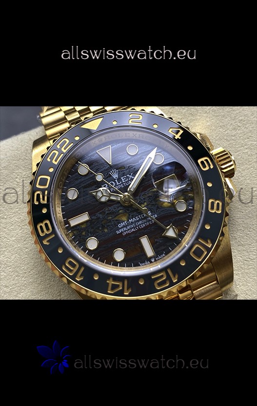 Rolex GMT Masters II Super Clone 126718GRNR Yellow Gold Tiger Iron Dial Swiss Replica Watch