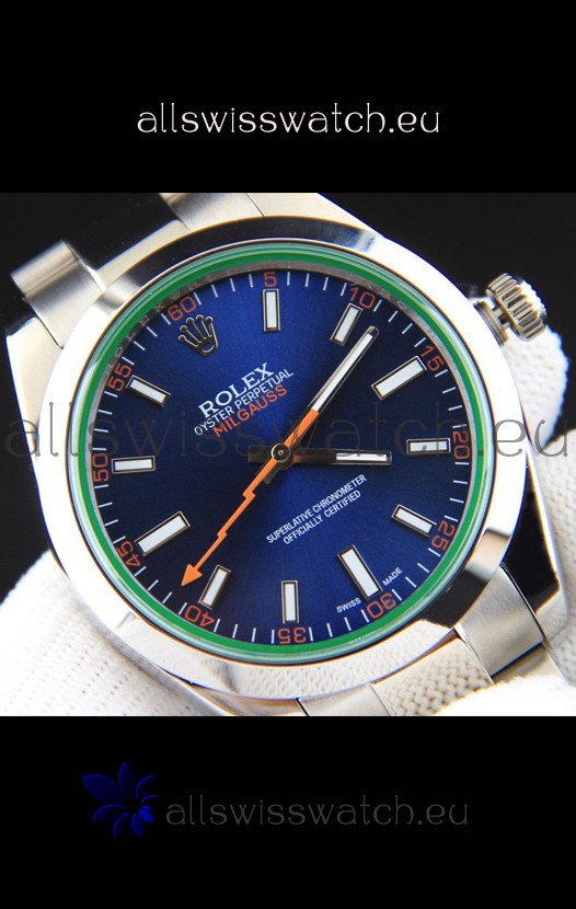 Rolex Milgauss Japanese Movement Replica Watch in Blue Dial