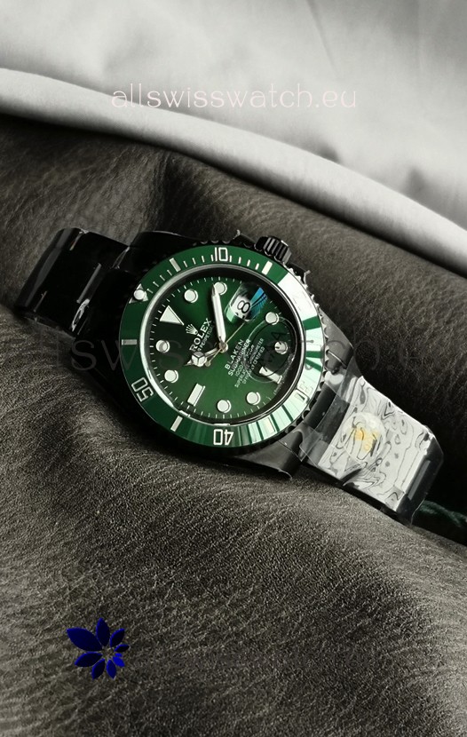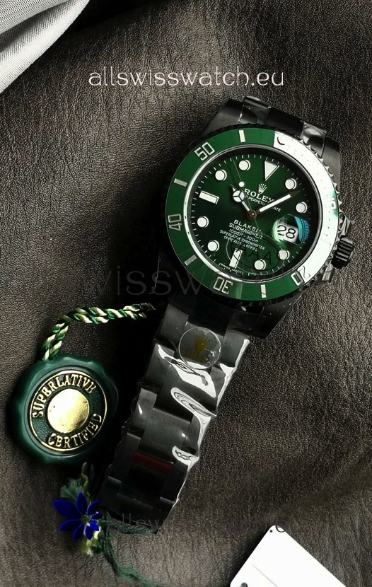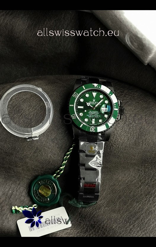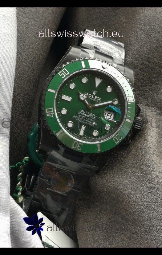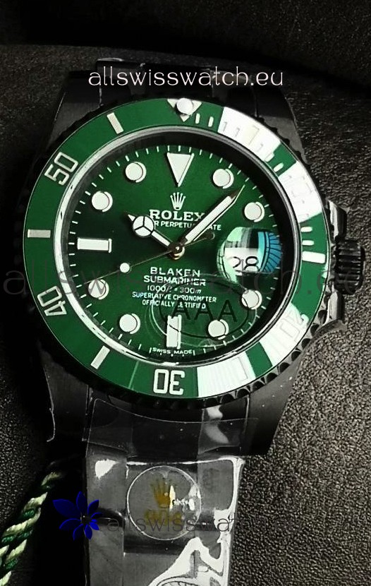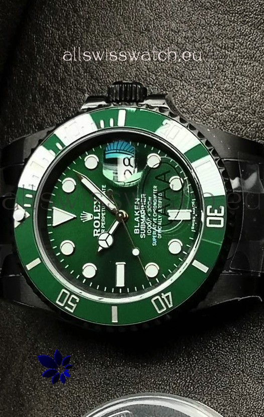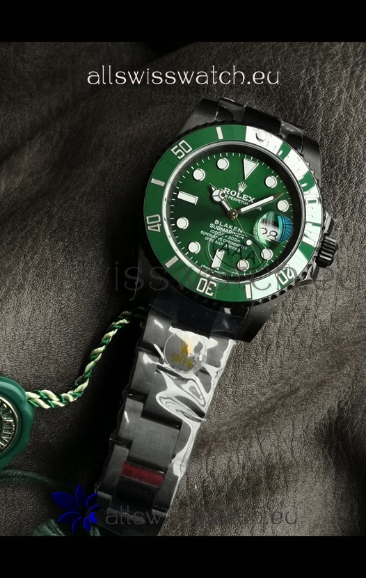 Rolex Submariner Blaken DLC Coated Swiss Replica Watch in Green Dial