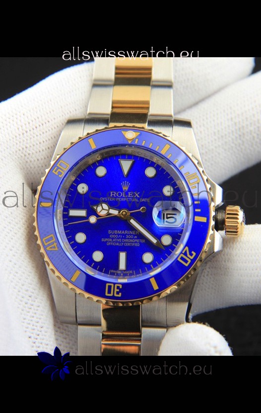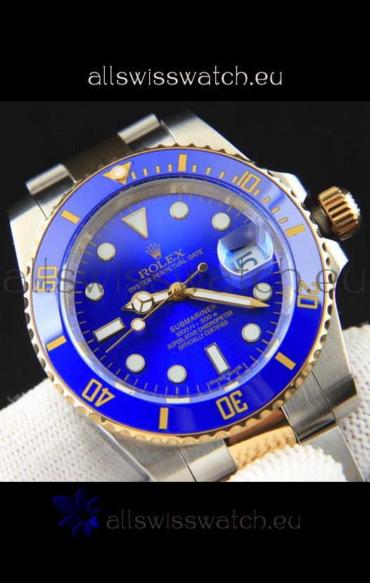 Rolex Submariner Japanese Replica Watch in 2 Tone Yellow Gold Casing Blue Dial