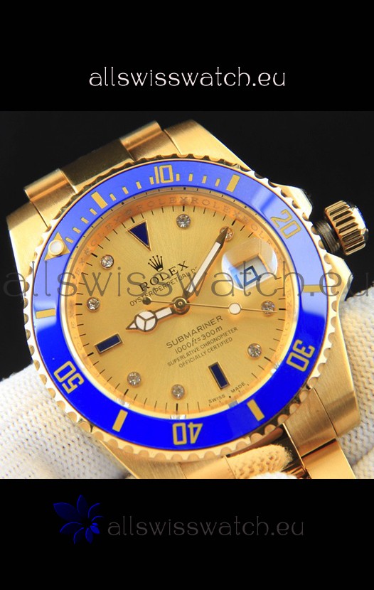 Rolex Submariner Japanese Replica Watch in Yellow Gold Casing