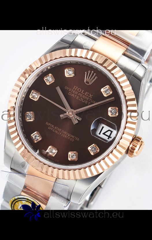 Rolex Super Clone Datejust ETA 2688 Movement 31MM Two Tone Rose Gold Swiss Brown Dial