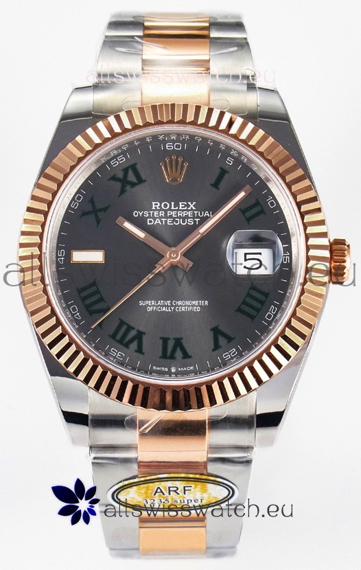 Rolex Super Clone Datejust ETA 3235 Movement 41MM Two Tone Rose Gold Plating Roman Dial Watch