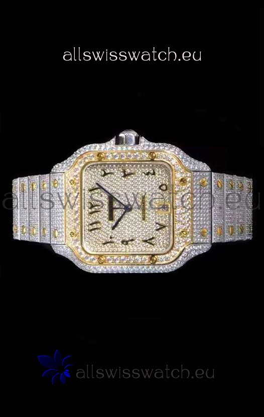 Santos De Cartier Swiss Replica Watch with Diamonds Embedded Dial in Two Tone Casing 40MM