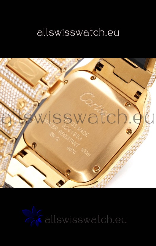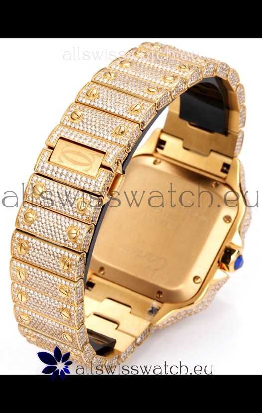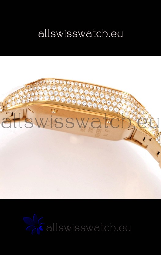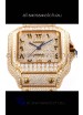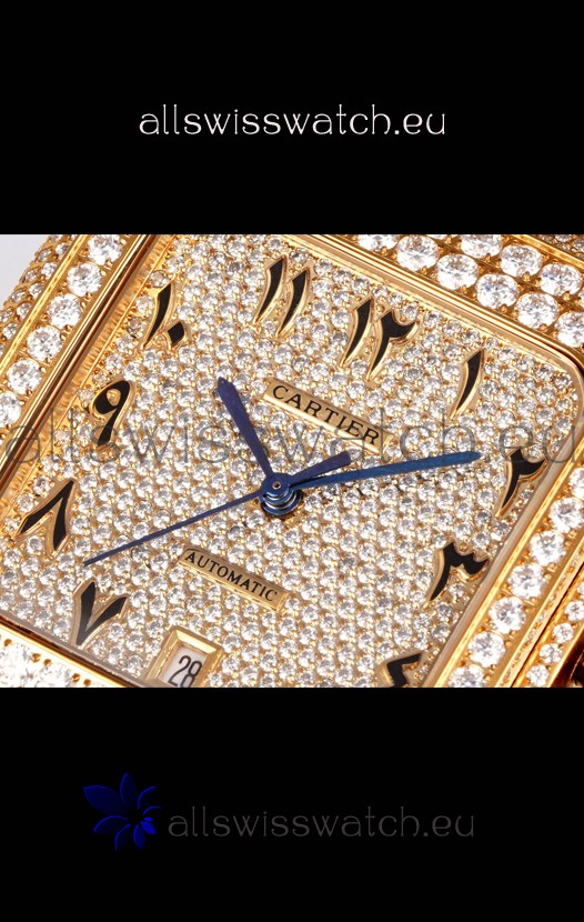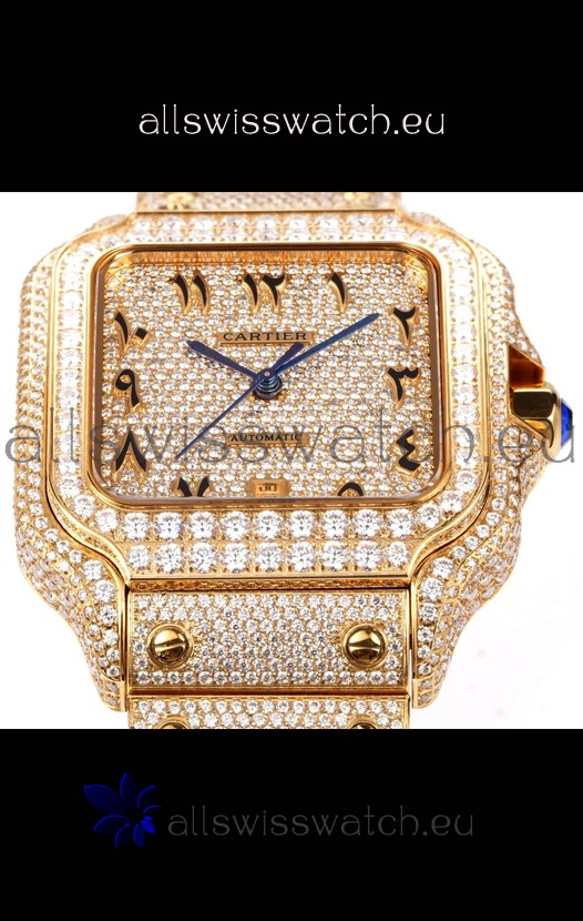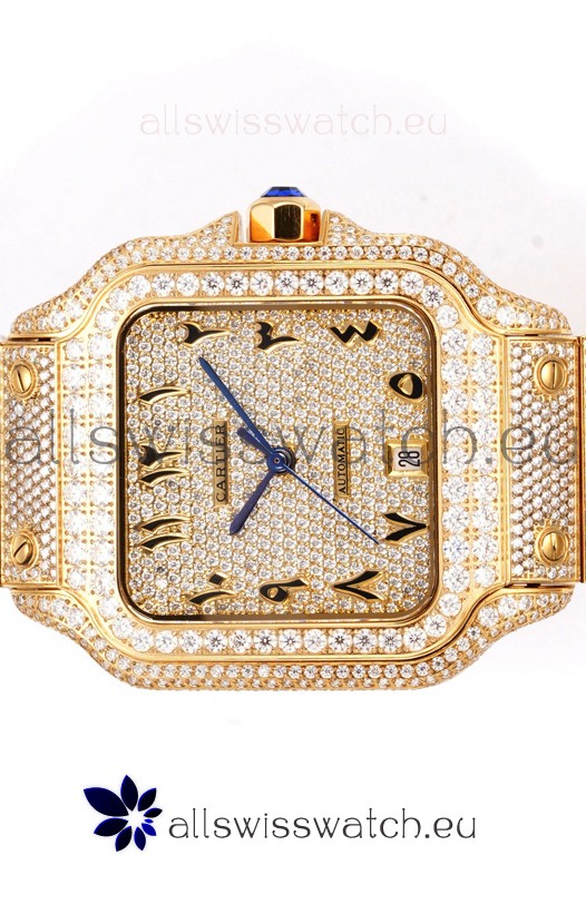 Cartier "Santos De Cartier" Yellow Gold W/ Diamonds Arabic Dial 1:1 Mirror Replica - 40MM - Genuine Diamonds