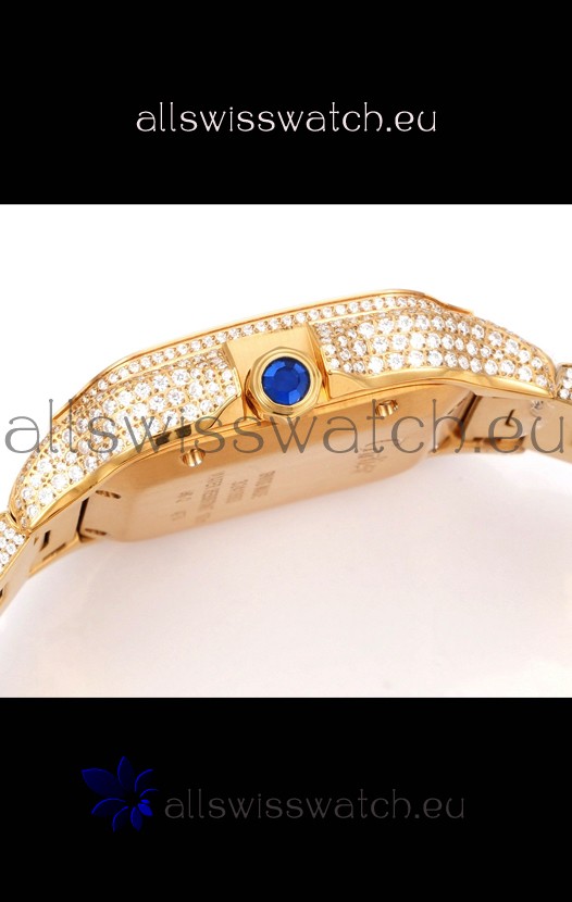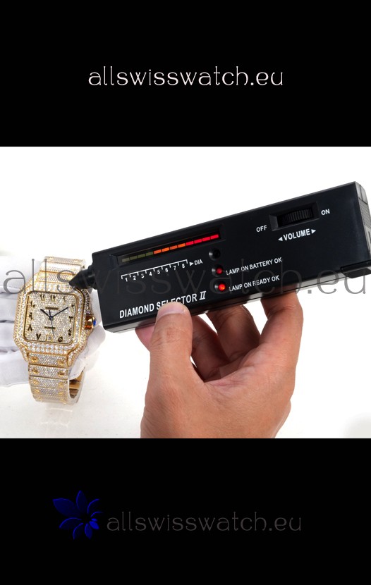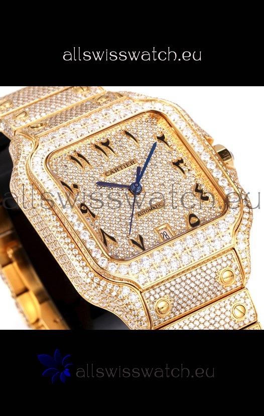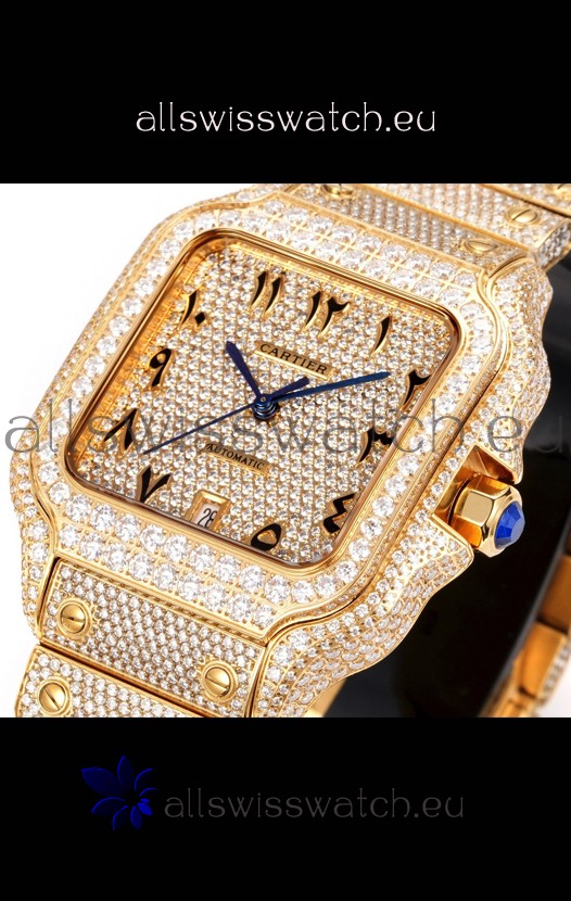 You're reviewing: Cartier "Santos De Cartier" Yellow Gold W/ Diamonds Arabic Dial 1:1 Mirror Replica - 40MM - Genuine Diamonds