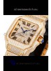 Cartier "Santos De Cartier" Yellow Gold W/ Diamonds Roman Dial 1:1 Mirror Replica - 40MM - Genuine Diamonds