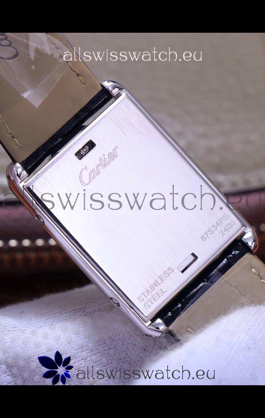 Cartier Tank Reversible Swiss Quartz Replica Watch in Steel Casing - Black Strap